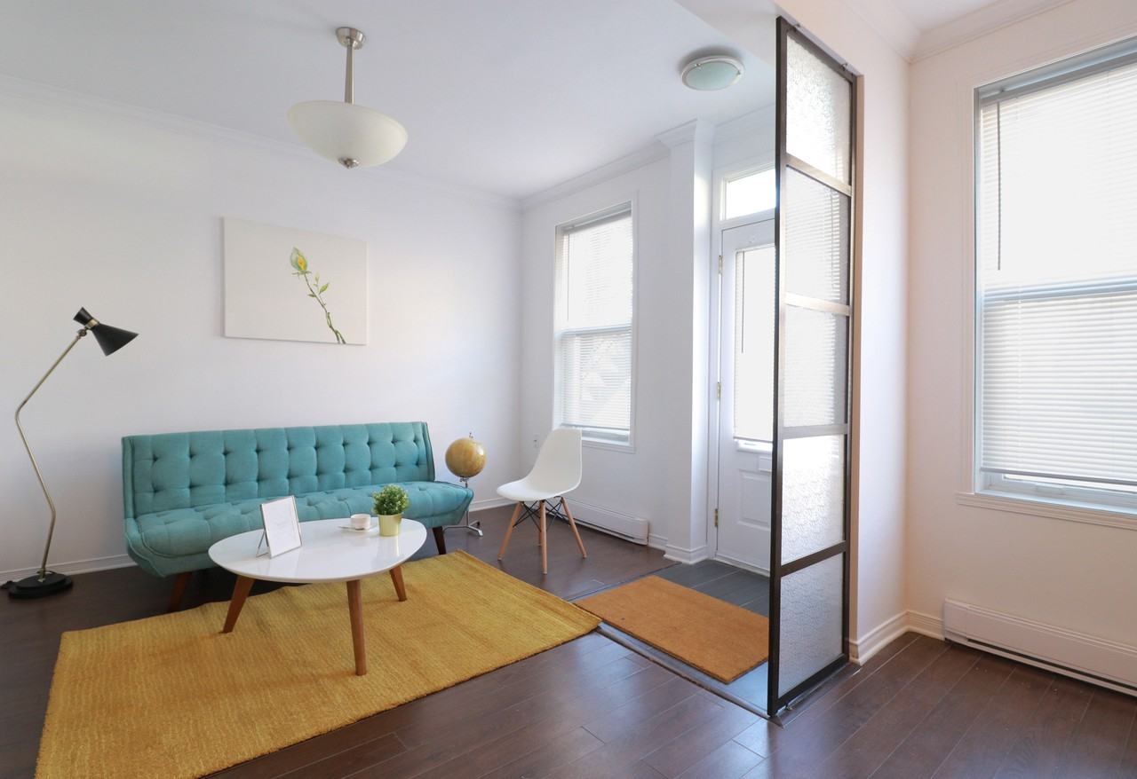 Grand 4 ½ à louer à cote du métro Pie IX, plus de 800 pieds carrés. Deux chambres à coucher fermées très ensoleillées, avec lits, matelas. La cuisine et la salle de bain rénovées. cours en arrière très sympa. Les électroménagers sont inclus, poêle, frigo et lave-lave-vaisselle inox, laveuse et sécheuse de LG, télévision intelligente, Internet haute vitesse est compris(120M). Air climatisé. Proche de tout, 3mins de marche du métro Pie IX, 2mins de marche à supermarché, 4mins de marche a la promenade Ontario – plein de restos et bars. Collège Maisonneuve, deux écoles, marché de Maisonneuve, CLSC, pharmacie etc… sont à distance de marche aussi. Animaux/fumeurs non permis. *Enquête de crédit requise Spacious and sunny 4 ½ apartment near Pie IX metro station, over 800 square feet. Two closed bed rooms facing south-west, entire apartment has renovated recently. With a backyard. The appliances are provided, stove, refrigrator, dish-washer, washing machine and dryer. High speed internet included (120M). AC available. The apartment is very well located, 3 mins walk to metro station Pie IX, 2mins walk to supermarket, walking distance to schools, Maisonneuve market, CLSC and plenty of restaurants/bars. Pets/smoking are not accepted. * credit check required