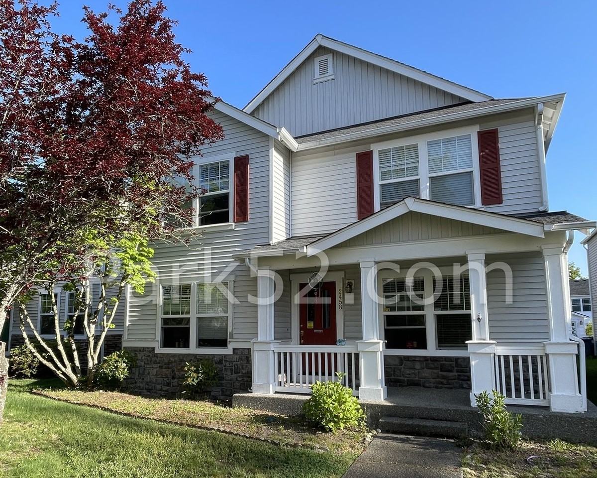 Conveniently located 4-bedroom, 2.5-bathroom home in DuPont with ample living space. Home is tucked back behind a field for more privacy. This home features an open kitchen with stainless steel appliances, a kitchen island with a breakfast bar, and a walk-in pantry. With a formal dining room, dining area off the kitchen, front living room, and larger living room there is plenty of space for entertaining. The oversized upstairs loft provides additional living space perfect for a play room or an additional living room. The primary bedroom has an attached bath with a garden soaking tub and a large walk-in closet. Two other bedrooms have ceiling fans and walk-in closets for additional storage. Laundry area is located off the kitchen with washer/dryer hook-ups. Covered front porch, 2-car attached garage and forced air gas heat. Close to parks, walking trails and town center area. New laminate and carpet coming soon! Pet friendly. 2 pets max. $500 deposit per pet and $40 pet rent for one and $75 pet rent for two. Tenants are responsible for all utilities and lawn maintenance. To meet the income requirement for this property, applicant(s) are required to have a household gross monthly income of 3 times the rent amount. We do not accept Zillow or 3rd party applications. Please contact Park 52 directly for more information or a showing.