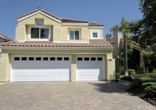 VIEW. CULDESAC. GUARD-GATED. Ideally located on one of the favorite streets in highly sought after guard gated "Calabasas Hills" with charming curb appeal offering an updated paver stone driveway and matching walkways as well as a wrap around yard...perfect for outdoor living, playing and entertaining. Updated wood front entry door with iron accents leads inside to light-infused interior. Picturesque remodeled interior offers many customized upgrades. The updated Chef's kitchen offers stone flooring, newer cabinets, newer windows, granite counters, designer tiled backsplash, free-standing VIKING range and GE Monogram built-in refrigerator. Formal living and dining rooms feature stone floors, lofted and pitched ceilings and walls of windows and doors. Bathrooms have been updated as well and feature stone flooring, custom hardware, and fixtures. Electrical upgrades include recessed lighting, designer chandeliers, and a dual zone A/C with a remote-controlled digital thermostat. Travertine and distressed hardwood floors flow throughout most of the lower level. There is easy access to the neighborhood play park, two resort-style HOA pool grounds, and award-winning Las Virgenes elementary school Bay Laurel.