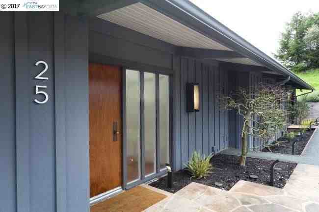 PENDING Built in 1957, this sleek mid-century home is entirely level and hosts six bedrooms and four bathrooms in approximately 3300 sq ft. Situated on one acre with views of the bay, this is a dramatic showcase in a unique setting, with soaring ceilings, crisp angles, and wide views. Beautifully finished hardwood floors and restored original quarry tiles span much of the interior. A broad foyer opens to the living room with vaulted ceiling and gleaming redwood paneling. Sliding glass doors lead out to a wrap-around deck. Step down to a broad patio and wide flat backyard. Garden steps lead to the orchard below. Through the glass breezeway flanked by open atria to the family room, enjoy massive views. Mid-century lines, including cinderblock detail, a floating hearth, and built-in storage make this an exciting entertaining space The kitchen is appointed with quartz counters and gleaming stainless appliances. The adjacent "nook" is ideal as a light office space, pantry or breakfast room. Clerestory windows and front garden outlooks add vibrancy and warmth. The very private master retreat also enjoys the light from clerestory windows and vaulted ceiling. A built-in headboard, dual closets with built-in dressers, a deep closet with telescoping valet rod, two office nooks, a double sink, and a dressing table are among the amenities. The master bathroom hosts a walk-in shower and divine sunken tub. A guest room sits adjacent to the family area with a private bathroom. Close by is the utility room, from which exterior access makes this an ideal spot for visitors keeping separate hours. Below the deck is an orchard ready for the urban gardener or aspirational wine-grower. Along the side of the house is a large patio with terraced planting beds. With a polymer floor coating, the two-car garage feels like a showroom, with a built-in workbench and ample lighting. A third parking pad sits astride the garage, with a tool shed in front of it. Parking allowed in front of garage also. Garbage and gardener included. One year lease ONLY.