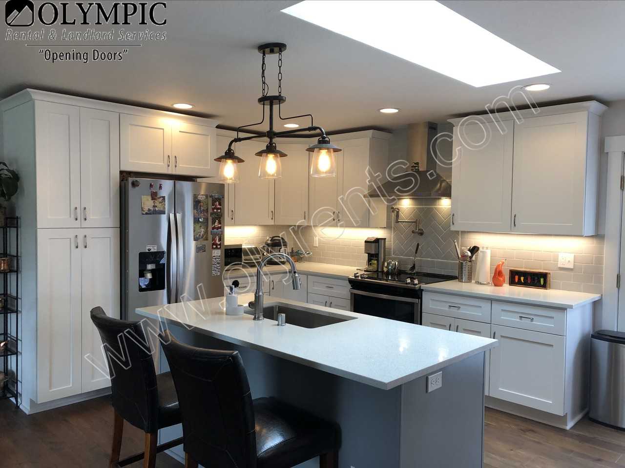 Completely updated 3 bdrm 1.75 bath home located on a large corner lot in Steilacoom. 2 car detached garage and RV Parking! Single level home. Wood flooring (except 2 bedrooms have carpet). Kitchen features quartz countertops, stainless steel appliances (including Refrigerator, Range and Dishwasher) and island with breakfast bar, pantry. Washer/Dryer Included. Electric heat. Fenced Yard with large patio. 1416 sq ft. No Smoking. Small pets negotiable with additional rent and deposit. Town of Steilacoom.