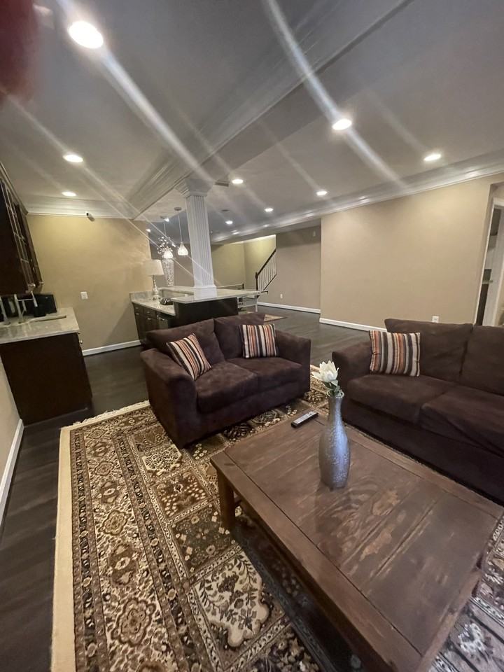 Fully furnished basement for rent in a single family home. It's ready to move in. The whole basement will be available only to you, not shared. Basement includes: single bedroom with closet, full bath, living room, fitness room (includes elliptical and universal lifting machine), fully setup theater and entertainment area (ping pong already there). The bedroom contains a queen bed with mattress. The theater is awesome. Watch all your favorite movies and shows in big screen and theater speaker system. A big TV is mounted on the living room wall. The tenant will be provided with required amenities such as refrigerator, small stove, microwave, toaster and cooler. It's a feeling of living in a house instead of typical apartment. You will get your own walk out basement and allow you to enter the place at your convenience. Come check out this gorgeous space. The owner lives upstairs. Rent includes utilities which includes gas, electricity, sewer, trash, internet etc.