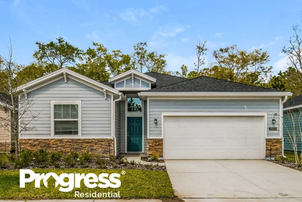 Want to tour on your own? Click the “Show Yourself In” button on this home’s RentProgress. com listing or call (904) 900-2642 to register for a self-guided showing at a time that works best for you. This newly constructed four-bedroom, three-bathroom rental home in Jacksonville, FL features an attached two-car garage and a covered entryway. The vast living room draws you in with the comfort of a beautiful ceiling fan. Sliding glass doors open up to a sun room, where you'll be able to take in the view of the lovely backyard. In the kitchen, you'll discover a large corner pantry, white cabinetry, and modern stainless steel appliances. The island offers additional storage and workspace, as well as seating. You'll enjoy spending your nights in the carpeted main bedroom, where you'll find a convenient walk-in closet. The attached bathroom includes an attractive walk-in shower, a tub, and double sinks. Schedule a tour today.