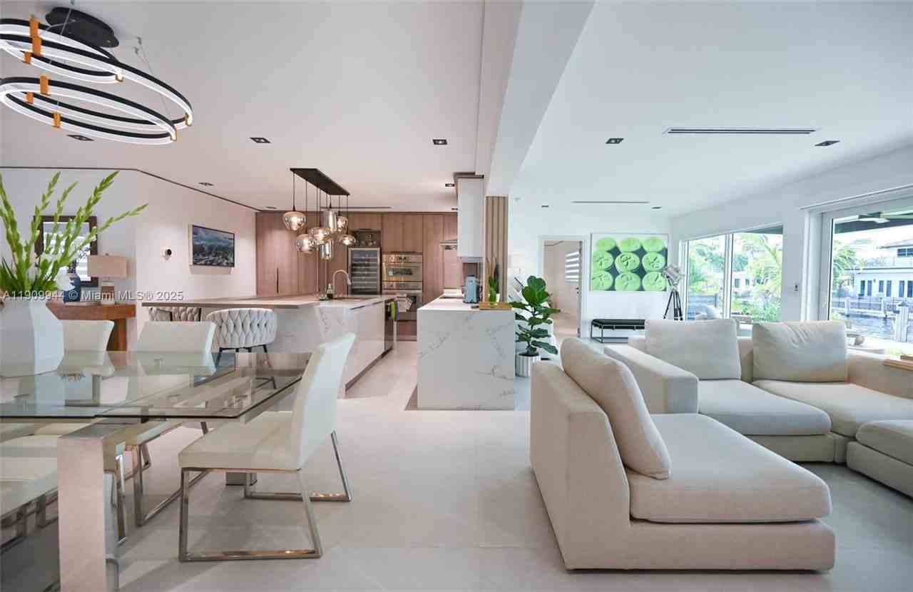 COURTESY OF United Realty Group Inc Beautifully renovated and move-in ready, this exceptional 4BR/4BA waterfront home delivers the ultimate coastal lifestyle in east Pompano Beach. Boaters will love the private dock with ocean access and no fixed bridges. The fully remodeled interior features a modern kitchen with high-end THERMADOR appliances, quartz countertops, and a spacious island, along with large bedrooms, walk-in closets, LED-lit bathrooms with smart toilets, new tile flooring, new doors, and an open layout ideal for entertaining. A 1.5-car garage adds convenience and extra storage. Step outside to a serene waterfront setting with a large patio and semi-covered pergola, perfect for relaxing or hosting guests. Located in a quiet waterfront community just minutes from the inlet, ocean access, Pompano Beach, and Lauderdale-by-the-Sea. Available furnished (call for pricing) or unfurnished, with seasonal pricing options also offered.