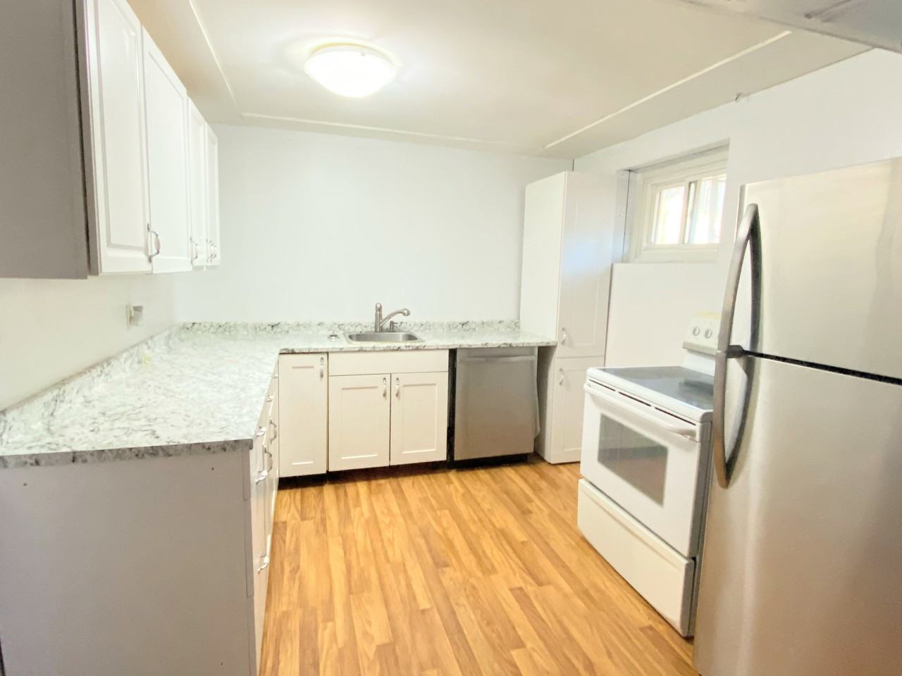 Clean and bright all inclusive one bedroom lower unit. This unit features: Wonderful kitchen with lots of counter space and tons of cupboards. Includes dishwasher, fridge and stove. Decorative living room with brick fireplace feature wall Spacious and bright bedroom with two windows Washer and dryer in unit are included Laminate flooring throughout the unit makes for an easy clean Private side entrance. Street parking is unlimited. Situated on a quiet street. A short way and one bus ride to the Centre Mall shopping centre. Available as early as February 1, 2023 $1390 per month - utilities are included Applicants must provide proof of employment, full credit report and photo ID.