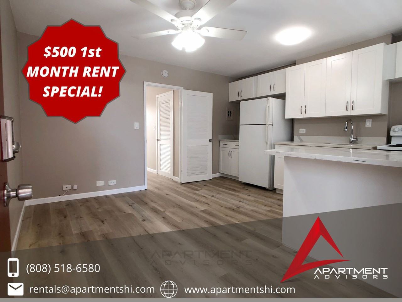 1-bedroom apartments here are priced 39% lower than 1-bedrooms in Waikiki.