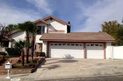 Santa Clarita Rental located just off of Tournament Road and Wiley Canyon Road in Valencia. This stunning single family home features marble flooring, fresh paint and an amazing open floor plan. Upon entering the home find the formal living room and dinging room with fireplace, marble floors and vaulted ceilings. Off the tiled entryway is a full bedroom & bathroom as well as the laundry room. Through the bedroom find the large family rooms with wood floors, vaulted ceiling with beautiful stained glass skylight and fireplace. Adjacent to the family room is an ideal space for entertaining with wet bar, fireplace, dining area & access to the kitchen with granite counters, back splash and floor. Upstairs find the remaining bedrooms including the Master Bedroom with fireplace, walk-in closet and Master Bathroom with soaking tub and separate stall shower. The lush backyard boasts a 1/2 basketball court, fruit trees and newly covered patio. Gardener included. Managed by owner. 12 Month Lease.