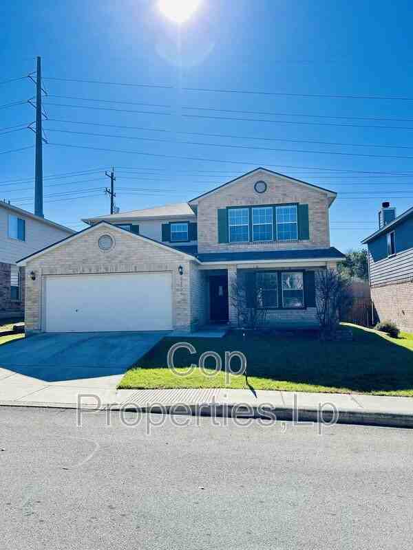 Designed for spacious family living, this well-appointed home offers approximately 2,740 square feet with 4 bedrooms, 3 full bathrooms, and covered front and back patios. The flexible layout includes a secondary bedroom downstairs, while the primary suite is upstairs and features a full bath with walk-in shower, garden tub, double vanities, and ample closet space. The backyard is ideal for entertaining with a beautiful flagstone patio, large fenced yard, and sprinkler system for year-round greenery. Conveniently located near shopping, dining, and entertainment, and zoned to highly rated schools with access to a large amenity center offering a pool, tennis, basketball, volleyball, and playground. Move-in ready and designed for everyday comfort.