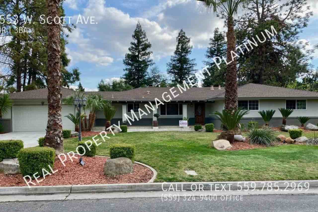 SCHEDULE A SHOWING ONLINE AT: http showmojo com lre 00d99ce069 CLICK to schedule a showing: https showmojo com l 00d99ce069View 3D Tour Link: https my matterport com show ?m=otSmLEBJauq3 bed. / 2.5 bathroom.2060 sq. ft., built in 1961. Gorgeous family room with stone fireplace, beams, Living room with custom shelving, dining and views of the backyard. Luxury vinyl plank throughout, carpet in bedrooms. Ceiling fans throughout. Kitchen has granite counters, gas range, wall oven, microwave, refrigerator, breakfast bar, dinette area. Hall bathroom has dual sinks and a tub/shower. Primary bathroom has a single vanity and shower. Two additional bedrooms. Hall bathroom has dual sinks and a tub/shower. Laundry room with washer & dryer provided, leads to the attached 2 car garage. Spacious backyard with covered patio and lawn area. Located north of Shaw off the Van Ness Blvd. Pet considered with additional $50 pet rent & deposit. Dog only, NO cats. No smoking. Renter's insurance is required. Yard care provided. Cross streets are Van Ness & Shaw. Call (559) 382-9569 for automated information or (559) 324-9400 to contact the office. BRE# 01901101. All information is deemed reliable but not guaranteed and is subject to change. Non SmokingRenters Insurance Required