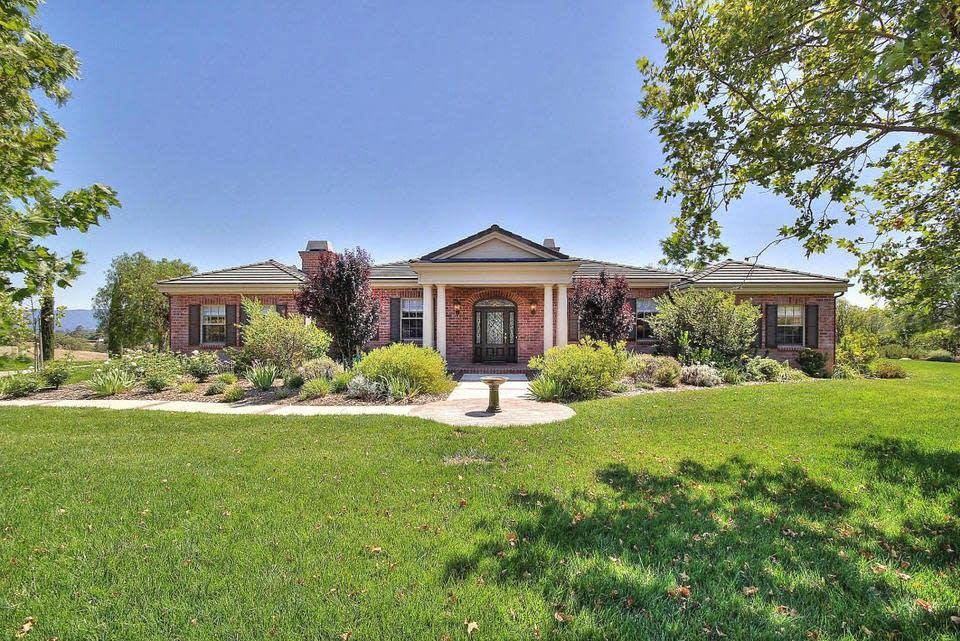 Kentucky Style Ranch Home in gated Los Olivos Community - 5 acres on 40 acre ranch, set on hilltop buffered by other large parcels, accessed via a security gated private road. Distant Views. Professionally landscaped with conventional as well as drought tolerant species. 3+3.5, with office, 2835 s.f., Finished 3 car garage. Beautifully Appointed with: Granite counters, hardwood and tile floors, shutters, 11' ceilings with crown molding, wooden hearth, Pella wood windows, top shelf window coverings, French doors to exterior throughout, 2 zone heating and A/C, security system, 2 refrigerators, 2 fireplaces, storage building. Kitchen remodeled March 2018 including high end fixtures and appliances. Several miles of private hiking trails. Verizon DSL available. Includes, gardener, landscaping water, water softener service. Can include very desirable furniture. (RLNE4221762)