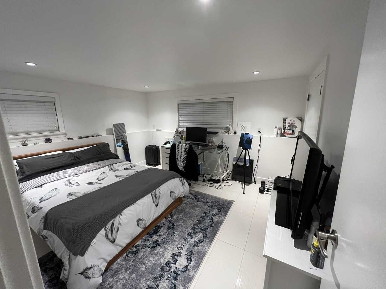 1 Private Bedroom in Shared 2 Bedroom Basement Suite. Walking distance to Nanaimo Skytrain station. $1200/month (includes utilities and WIFI) $600 security deposit Location: Near Nanaimo st and 27th Ave Available: Feb 1 (minimum 6-month lease, long term preferred) One occupancy only: ideal for one clean, respectful, non-smoking working professional or student tenant. Female preferred due to current roommate’s comfort and request. Roommate: You will be sharing the living space (living room, kitchen, bathroom) with one individual only – a female working professional in her late-20s. Features: - renovated - separate entrance - spacious walk-in closet - open kitchen concept - shared washroom with stand-up shower - furnished: • Shared living space with TV • Bedroom includes full size mattress, study desk, and chair (No TV in room, but you are welcome to bring your own) • Kitchen includes basic appliances and cookware Laundry: on-site, full-size washer and dryer (one day per week) Parking: Front street parking Convenience: - approx 5 min walk to Nanaimo skytrain station and 8 min walk to 29th Ave station (excellent access to downtown Vancouver) - bus routes: 25 UBC/Brentwood, 7 Dunbar, 33 UBC, 16 Arbutus, 26 Joyce. - 10-13 min walk to grocery stores and restaurants - nearby parks & bike route **Strictly no pets, smoking of any kind, house parties, drugs Landlord reference check required and last two recent paystubs. Must include in your inquiry with a summary about yourself, occupation, how long you’re planning to stay, reason for moving, source of income, etc. Transparency: Please note that a family lives upstairs in the main portion of the home. While there may be occasional noise from above, we will do our best to maintain a quiet and respectful environment. Our previous tenants did not find this to be an issue, but we kindly ask that potential tenants consider this when deciding if the space suits their needs. Please send message with introduction. No phone calls. Thank you