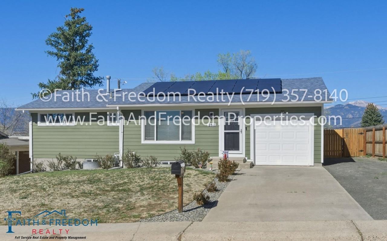 Available May 11th! See the video walk-through! https youtu be J3-GwGwrsVo Discover your new haven in this charming 2165 square foot home, built in 1959 and thoughtfully updated to blend classic character with modern convenience. Nestled in the scenic beauty of Colorado Springs, this residence boasts four spacious bedrooms and three beautifully remodeled bathrooms. The updated kitchen features a refrigerator, dishwasher, microwave, electric range, and a self-cleaning oven, all complemented by luxury vinyl flooring that flows seamlessly throughout the main living areas. Step outside to enjoy the expansive fenced yard, perfect for outdoor gatherings or simply soaking in the stunning mountain views. The finished basement offers additional living space, ideal for relaxation or entertainment, while RV parking ensures you have room for all your adventures. Energy-efficient solar panels and central air conditioning provide comfort and savings year-round on your electric bill. Solar panels help offset a significant portion of electricity usage. Tenant is responsible for any usage exceeding the covered amount. This property is pet-friendly, allowing you to bring your furry companions along for the journey. With washer and dryer hookups and a garage for added convenience, this home is designed for a hassle-free lifestyle. Smoking is not permitted, ensuring a clean and fresh environment. Don't miss the chance to make this exceptional property your new home! All tenants, roommate arrangements, and pets are approved on a case-by-case basis. Monthly pet rent of $35 per pet applies, and an additional refundable Security Deposit of $300 per pet is required. Security Deposit is $2,500 and Rent is $2,500 per month. Initial lease term shall be for 1 year. If you would like to schedule a showing, please Call or Text our Property Manager, Elizabeth, (719) 357-8140 during our normal business hours (Mon-Fri, 9am to 5:00pm). No inquiry texts are returned on weekends, Holidays or outside our normal hours. Be sure you leave a voicemail and your call will be returned as soon as our Agent is able. Most calls are returned within 24 hours on business days. For application inquiries visit www FaithAndFreedomProperties com Our Qualifying Criteria may be found here: https faithandfreedomproperties com rent-a-home Professionally Managed by Faith and Freedom Realty. Portable Tenant Screening Report (PTSR) - Colorado Law Pursuant to 38-12-902(2.5), Colorado Revised Statutes, applicants have the right to provide Faith & Freedom Realty | PCS by Vets with a Portable Tenant Screening Report (PTSR). If a compliant PTSR is provided, Faith & Freedom Realty | PCS by Vets will not charge an application fee or a fee to access or use the PTSR. To be considered compliant, the PTSR must be provided directly by a consumer reporting agency or a third-party website that regularly engages in the business of providing consumer reports, must comply with all applicable state and federal consumer reporting laws, include the applicant\'s identifying and screening information, and must have been completed within the previous thirty (30) days. By submitting a PTSR, the applicant certifies that there has been no material change in the information contained in the report since it was generated. While Faith & Freedom Realty | PCS by Vets does accept compliant portable screening reports as defined by HB23-1099, which would result in no application fee being required (or possibly an appl..
