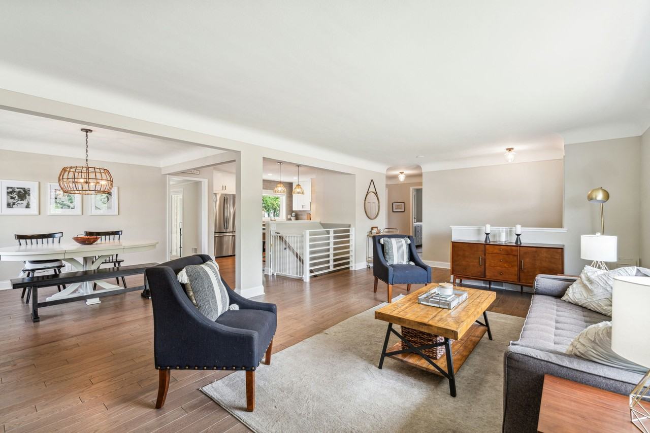 Welcome to this beautiful home, remodeled in 2021. The open floor plan boasts a dream kitchen with ample prep space and storage. Attached is a large living room great for entertaining both adults and children alike. The current owners installed custom blinds on all windows across the first floor. Right off the kitchen is a mudroom your friends will adore, equipped with a new custom, walk-in closet, built-in bench, and drop zone. The owner's suite has custom built-ins, a custom closet, and access to a remodeled bathroom with double vanities. The lower level was extensively updated and includes a large family room, two bedrooms, a full bath, and an extra flex room, which could be used as an office, playroom, exercise room, and more. The current owners added brand new Samsung Smart washer and dryer as well as a new water softener system. Outside, the current owners extended the garage to 2.5 stalls with built-in workbenches, and the back yard is fully fenced-in.