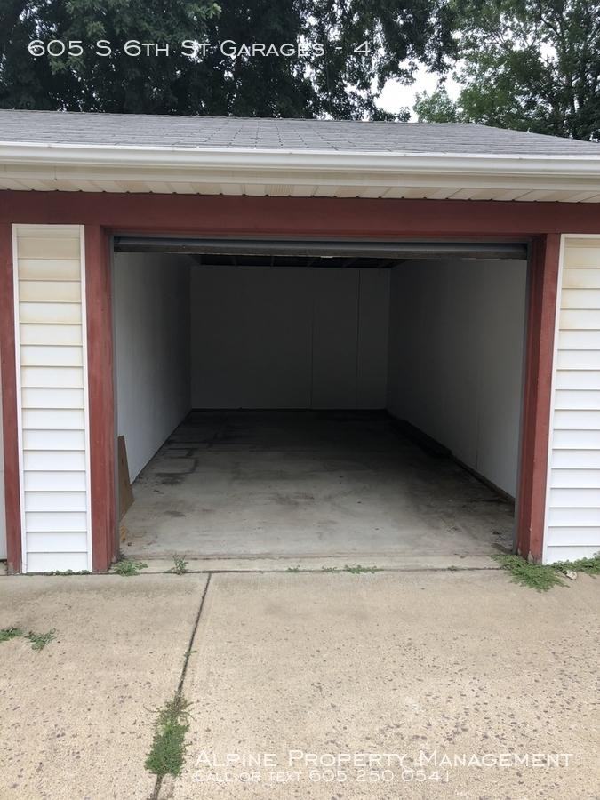 ---- SCHEDULE A SHOWING ONLINE AT: showmojo. com lt cc46c98058 ---- Garage For Rent at 605 S. 6th St. in Sioux Falls South Dakota. Interior Dimensions are: 23\\\' (d) x 11\\\' (w) : Opening is 104\\\" (w) x 82\\\" (h) . No electrical in garage. Call (605) 274-7368 for more details. -Alpine Property Management Provided by Listanza ID 23378388
