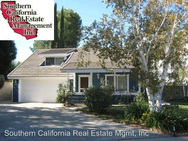 Three Bedroom Valencia Home in The Bungalows - A front walkway leads to this lovely cottage style home with covered front porch with bench swing. Enter into the spacious living room with vaulted ceilings, hardwood floors, and a fireplace with marble border. The dining room opens to the living room and has vaulted ceilings with ceiling fan, hardwood floors and a sliding glass door leading to a large covered side patio and backyard. The kitchen features display cabinets, Corian counter tops and ceramic tile flooring. Kitchen appliances include: stove, dishwasher and microwave. There is one guest bedroom downstairs and guest bathroom with shower. A hallway with pocket door leads upstairs to a second bedroom/loft with ceiling fan and closet. The master bedroom has mirrored closet doors and a sliding glass door leading to another patio and to the backyard. The master bathroom has a newer vanity with granite counter tops and double sinks and bathtub area with ceramic tile flooring and backsplash. There is an attached two car garage with laundry hook ups and built in storage cabinets. Enjoy the HOA pool and spa area with playground just down the street. This community is located close to shopping, restaurants, an elementary school and hospital. * Tenants will need to obtain Renters Insurance. Proof of insurance will be needed at lease signing. DO NOT DISTURB OCCUPANTS – PRIVATE PROPERTY - NO TRESPASSING To schedule a viewing appointment, please call: Southern California Real Estate Management at (661) 255-7600 or email: ****. Application Fee of $30 per applicant. Rental Applications may be downloaded from www screm com We have more homes available in the Santa Clarita area please visit our website at: www screm com * Valid Photo ID will be required upon sign-in at our office prior to viewing any of our properties with our leasing agents. Directions: From SCREM office turn right onto Valley Center. Turn right onto Soledad. Soledad becomes Valencia Blvd. Continue on Valencia Blvd. Turn left onto McBean Parkway. Turn left onto Del Monte Drive. Turn right onto El Paseo. Turn right onto Baleria. House at the end of the cul-de-sac on the right. Directions are for Drive-By purposes only and scheduled appointments DO NOT DISTURB OCCUPANTS – PRIVATE PROPERTY - NO TRESPASSING SECURITY DEPOSIT: 1 MONTHS RENT MINIMUM, 2 MONTHS RENT MAXIMUM