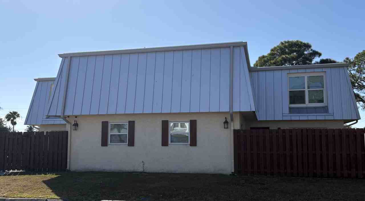 This Stuart 2 bedrooms, 1.5 bath 2 story townhouse is centrally located near US1, Alt A1A and at the entrance of Golden Gate. This condo has 2 bedrooms with vinyl wood planking in the bedrooms upstairs, each with spacious closets and large hurricane grade windows. There is also a separate utility closet upstairs with washer/dryer hook ups that will fit a full size washer and dryer. The upstairs bathroom features a full bath/shower. Downstairs has tile flooring and a large open kitchen with sliding glass doors and matching white appliances featuring a glass top stove. The sliding glass doors in living room and kitchen both lead onto a private patio. Each unit has a private fenced in patio. Cats are fine, no dogs are allowed. View some of our AI decorated pictures! (Apartment does not come furnished). Please see our video for a tour of a like apartment in the same complex. Application Required online per adult. An application can be found online at www edmarlegacy com