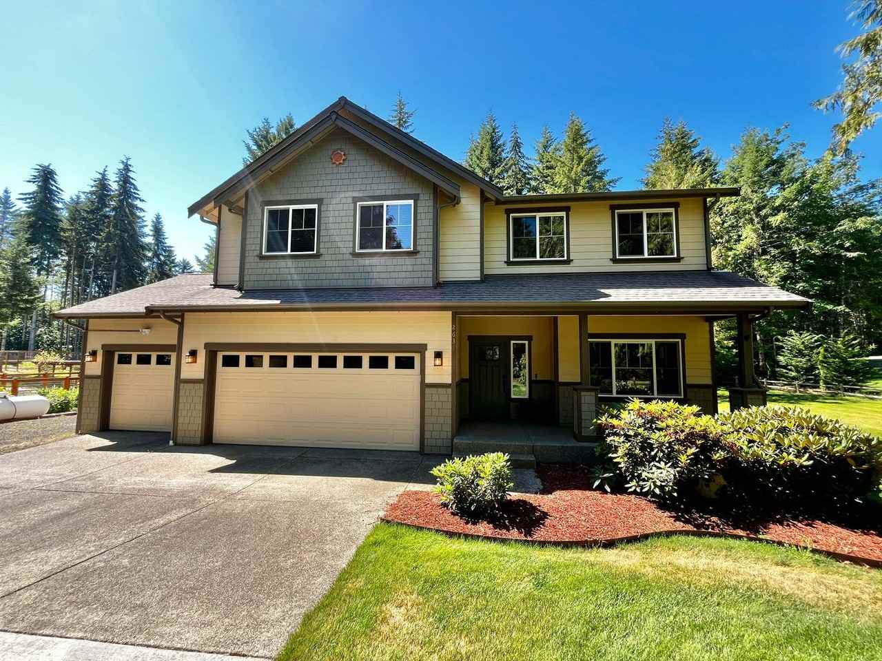 Welcome to this stunning and meticulously cared for 3 bedroom, plus bonus room, 2.5 bathroom home located in Poulsbo. This house boasts a sunroom, a propane fire pit that includes 6 Adirondack style chairs, a custom stamped concrete patio, covered deck, a Bullfrog spa, fenced in garden beds, and a convenient circular driveway. Step inside to the gourmet kitchen, featuring granite counters, a high end Bertazzoni gas range, stainless LG appliances and a kitchen pantry. The open and inviting living room is sure to keep you comfortable on those chilly PNW evenings with an efficient gas fireplace. The Central AC is a huge bonus when the warm weather arrives. This home offers high-speed fiber optic internet. All bedrooms are located on the upper level. The huge primary bedroom includes a 5-piece bath and extra-large walk-in closet. Enjoy the peaceful acreage that includes apple, pear, peach and cherry trees, an irrigation system and all grounds maintenance included. With a 3-car garage and a Tesla charger, this home has everything you need for comfortable living. Don't miss out on this rare opportunity to live in luxury in a prime location close to Bangor Base. Pets considered with owner approval. Water/Sewer and landscaping included in rent. Tenant must carry liability insurance. Schedule a viewing with Danielle at 206.594.5877 or ****. Apply online at windermereforrent com