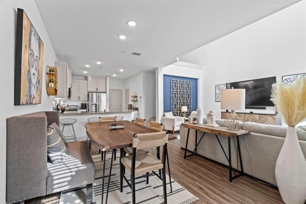 Property Status: Active FRESH NEW PAINT AND FLOORING DOWNSTAIRS!!! APRIL RENT IS INCLUDED-FREE!!! RENT INCLUDES TWO FRIDGES, WASHER, DRYER, COFFEE BAR, HOA FEES, TRASH PICKUP AND SECURITY SYSTEM MONITORING!!! Come see this beautiful like-new CB Jeni townhome in the acclaimed community of Riverset in Garland, TX! 2 refrigerators one brand-new in kitchen, washer & dryer, and security system monitoring included in lease! As you enter the front door it opens to the dining area, vaulted ceilings in the living room, and the gourmet dream kitchen. Home offers natural light throughout, storage, & vinyl plank all downstairs. Owner recently painted the interior of the home. The kitchen has granite counters, a subway tile backsplash, stainless steel appliances, a 5-burner gas range, upgraded cabinets, a coffee bar station, an extended bar top for seating, and a walk-in pantry. Both bedrooms are upstairs, separated by a landing loft area with an open balcony. Primary retreat boasts stunning finishes like grand windows, modern tile, a quartz countertop, dual sinks, an extended shower with a seat, a vanity, and a large closet. The 2nd bedroom is oversized with a private balcony & walk-in closet. Home is conveniently close to retail, shopping, schools, dog park, community pool, parks and trails! THIS ONE IS TOO GOOD TO LET GO! Office Phone: (214) 934-8953 Copyright © 2026 North Texas Real Estate Information Systems, Inc. All rights reserved. All information provided by the listing agent/broker is deemed reliable but is not guaranteed and should be independently verified.