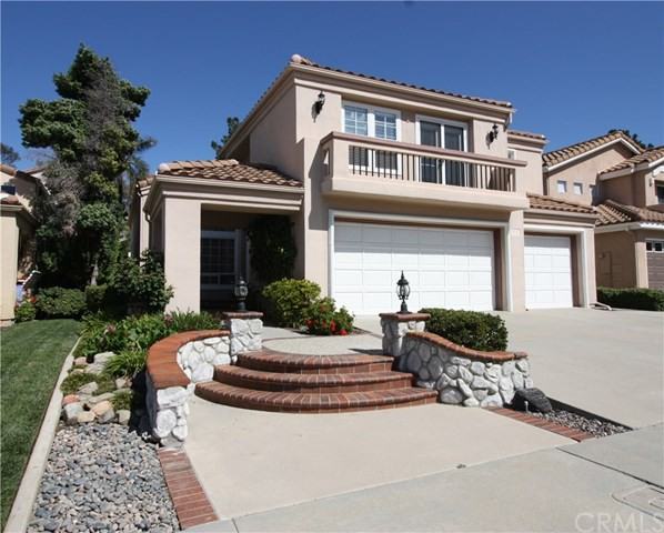This Califia light and bright beautifully maintained home with a desirable open layout welcomes comfortable family living and entertaining. A formal living and dining room with dramatic soaring ceilings. An updated Kitchen with granite counter tops, custom travertine backsplash and eating area, opens to large family room with a fireplace. Extra large picture window looks out to the private back yard. This spacious home features four bedrooms, three baths, plus a large bonus room with French doors leading to the balcony. One bedroom and bath on the main level. A luxurious master suite with vaulted ceiling and an inviting, cozy fireplace is the perfect place to relax. The master bath features dual sink vanity, separate soaking tub and shower, including a large walk in closet. Generous secondary bedrooms, with mirrored closet doors. Additional features include ceiling fans throughout, freshly painted, large inside laundry room with utility sink, and a spacious three car garage. One block from Award Winning Bathgate Elementary School. Enjoy all the amenities to Lake Mission Viejo, including swimming, boating, fishing and outdoor concerts.