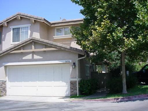 Spacious corner unit townhome in the heart of Valencia is walking distance to Bridgeport lake, schools, shopping and restaurants. The entryway has wood laminate flooring and opens to the dining area with ceiling fan. The living room has a two way gas fireplace, built in entertainment center and has a sliding glass door leading to the backyard with patio and nice landscaping. The kitchen has tile counter tops, recessed lighting, wood laminate flooring and breakfast bar. Kitchen appliances include: stove, dishwasher and refrigerator. The half bathroom downstairs has a pedestal sink. The laundry room has a full size washer and dryer and a door to the attached two car garage. There is a small loft upstairs off the hallway. Two guest bedrooms with ceiling fans and mirrored closet doors. Full guest bathroom. The spacious master bedroom has vaulted ceilings with ceiling fan, a walk in closet with mirrored closet doors and attached master bathroom with double sinks and a shower. Enjoy the HOA pool and spa with outdoor fireplace. Owner may consider a pet. Tenants are required to obtain Renter's Insurance. Proof of insurance will be required at lease signing. DO NOT DISTURB OCCUPANTS – PRIVATE PROPERTY - NO TRESPASSING To schedule a viewing appointment, please call: Southern California Real Estate Management at (661) 255-7600 or respond to: leasing@screm.com. Application Fee of $30 per applicant. Rental Applications may be downloaded from www.screm.com. We also have many other properties available in the Santa Clarita area. To fill out an application for this property, or to view other properties available, visit our website at: www.screm.com * Valid Photo ID will be required upon sign-in at our office prior to viewing any of our properties with our leasing agents. Directions: From SCREM office turn left on Valley Center. Turn left on Golden Valley. Continue on Newhall Ranch Road. Turn right onto Country Road. Turn right onto Cheyenne. Turn left on Big Horn. Last unit on the left. Directions are for Drive-By purposes only and scheduled appointments