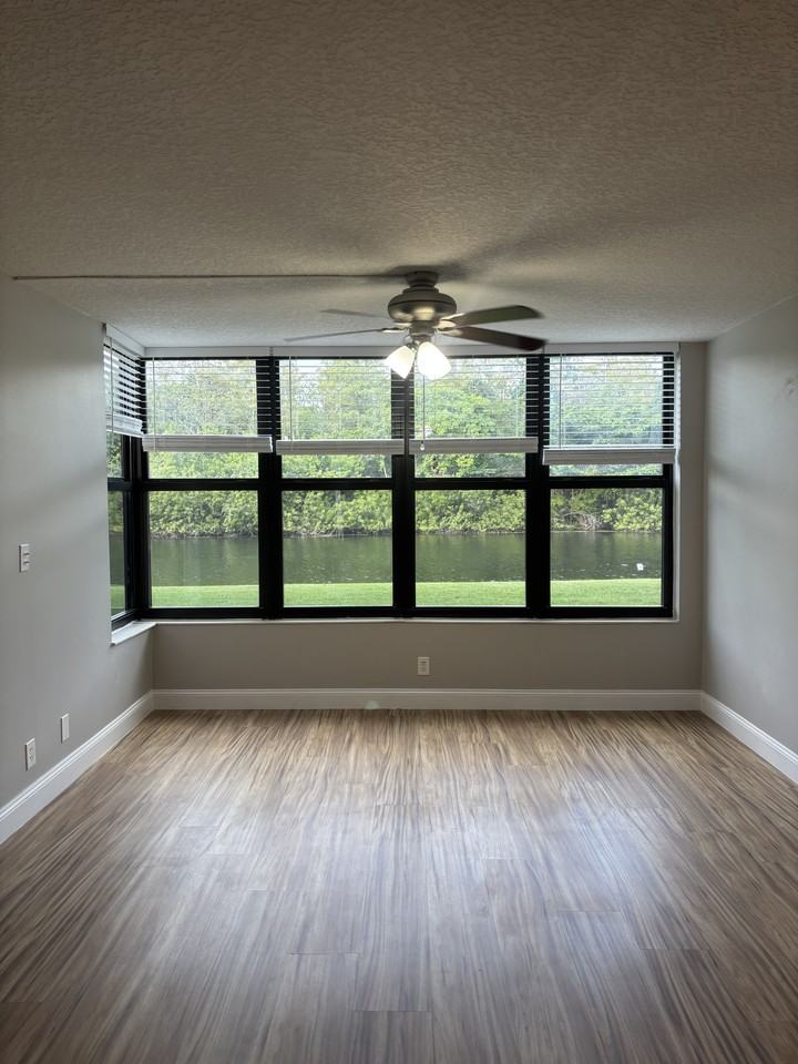 Beautiful freshly painted 2/2 condo unit on ground floor. Open floor plan with an amazing waterfront view from living room and master bedroom. Updated kitchen with pass-through and tile flooring. Mirror wall in master bedroom and dining area. Ceiling fans in both bedrooms and living area. NEW HURRICANE WINDOWS [2024] and laminated flooring [2022] throughout the unit. NEW a/c unit [2022] and hot water heater [2019]. NEW full-size washer [2023] & dryer [2024] in walk in laundry room. Included in the rent: cable [plus HBO], water, sewer, garbage, community pool/clubhouse and onsite area for washing cars. The unit has 1 assigned parking spot and plenty of guest parking. You may also enjoy all of the township amenities: pool, fitness center, tennis, basketball, kiddie play area, theater and much more. Excellent schools, quick access to turnpike and I-95. All ages community. No Pets, trucks, motorcycles or smoking allowed. Tenant is required to pay first, last and security upon signing an annual lease. Date Available: Mar 1st 2026. Please submit the form on this page or contact Bibi at 954-444-3466 to learn more. This property is managed by a responsible landlord using Avail landlord software.