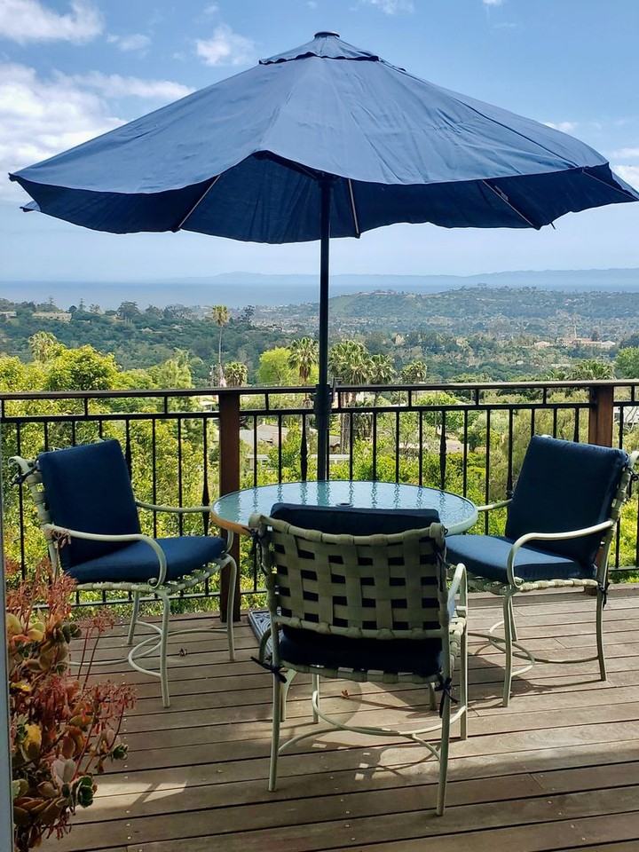 Nestled in the stunning Santa Barbara Foothills, this fully furnished residence boasts amazing city and ocean views. The beautifully updated kitchen includes stainless steel appliances, and eat-up bar. The primary suite features a spacious walk-in closet and a well-appointed en-suite bathroom. The second bedroom is outfitted with a generously sized smart television and a sofa which converts into a full-size bed. Stretching across the entire width of the house, the expansive balcony offers seamless indoor-outdoor living and can be accessed from both upstairs bedrooms and the dining area. Descend to the lower level, which is elegantly furnished as a third bedroom and a cozy sitting area, leading out to a relaxing covered patio. Water, trash, electricity, gas, and internet included. Conveniently situated near the Botanic Gardens and scenic hiking trails, and just minutes away from downtown, offering amazing dining and entertainment. Available April 1, with a three month minimum Lease and approximately 6 month maximum, depending on start date.