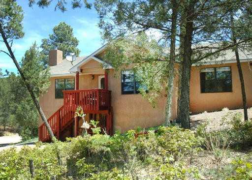 Chalet style home tucked away in the pines. Open living room with fireplace, recently remodeled kitchen with stainless steel appliances and dining area. Spacious master bedroom with garden tub in bathroom. Custom tile work in 2nd bathroom. 2-car garage, 2 side decks. Partially fenced on a wooded lot with an end of the road setting. Call Lee for more information or to schedule a showing, (505) 730-5232.