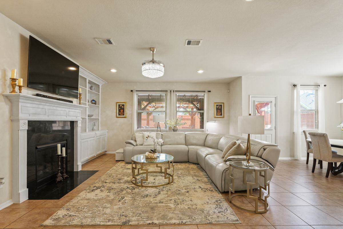 This gorgeous K-Hovnanian home has it all! When you walk through the front door, you are greeted with tall ceilings in the foyer, and a formal dining room to your right. As you continue through, you'll enter the living room, which is adorned with beautiful custom built-ins, and large windows that flood the room with tons of natural light! The kitchen is perfectly positioned in between the formal dining and living room, making it perfect for hosting and enjoying a home cooked meal. Downstairs also has the large primary suite, with a soaker tub, separate shower, 2 sinks, and a great walk-in closet! Up the stairs you will find 3 additional bedrooms, 2 full bathrooms, and a game room large enough for a pool table or to be used as a second living space. The backyard has a storage shed and a beautiful pergola with access to electricity for a sound system, or outdoor tv to enjoy the summer evenings! The home is steps away from the park, and is only a short drive to the neighborhood pool!