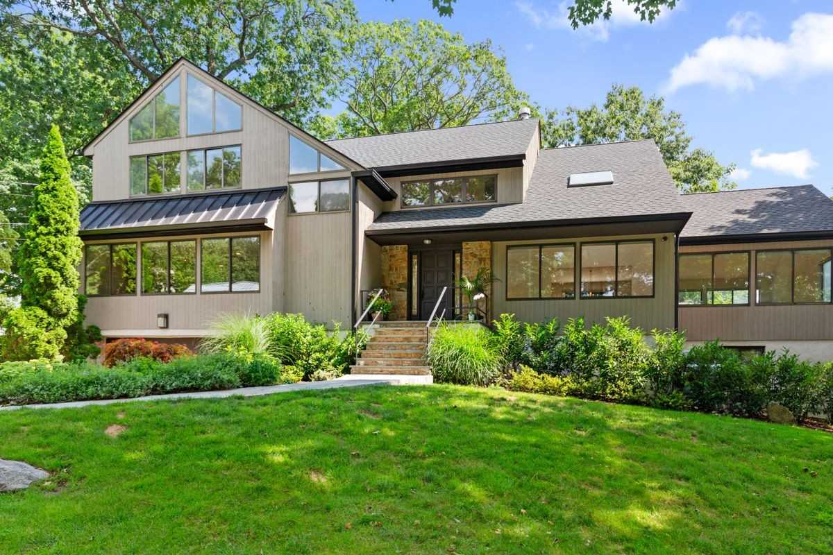 Step inside this stunning Contemporary home that combines modernity and tranquility in the Beechmont neighborhood of New Rochelle. Enjoy an idyllic lifestyle less than a 10 minute walk into downtown Larchmont. This beautifully renovated expansive home offers contemporary flair throughout its three floors. The 1st floor boasts a family room with a wood burning fireplace, a generously sized living and dining room, an updated kitchen equipped with high-end appliances, and a 1st floor bedroom with en-suite bath. The 2nd floor houses the primary bedroom featuring 20 foot ceilings and modern updated en-suite bath with a beautiful skylight. 3 additional bedrooms and a full bathroom complete the 2nd floor. The lower level offers an additional 1600 square feet of space that can be used flexibly. Whether you're seeking a peaceful retreat or a vibrant hub the gorgeous patio is perfect for cozy evenings or outdoor gatherings with family & friends. The lush landscaping adds to the overall appeal...