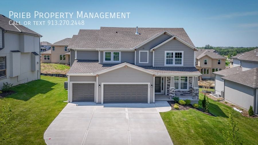 The Sydney 3 - A spacious 5-Bedroom Home with Elegant Upgrades in a Great Location! Welcome to your new home! This beautiful and thoughtfully designed house offers 5 bedrooms, 4 full bathrooms and a first floor room that’s perfect for a home office or additional bedroom. Step through the two-story vaulted entryway and into an open concept great room, kitchen and breakfast area, ideal for relaxing or entertaining. The kitchen features a large center island with bar-height seating, a walk-in pantry, stainless steel appliances and stunning granite countertops. You’ll also love the upgraded tile backsplash, custom cabinetry, new blinds and dry bar connecting the great room to the dining area. The main floor includes hardwood flooring throughout the entry, kitchen, breakfast area, and mud room. You’ll also find a handy boot bench and entry closet to keep things organized. Upstairs, the spacious master suite is your private retreat, complete with a luxurious jetted tub, walk-in tile shower and direct access to the laundry room through the walk-in closet. All upstairs bedrooms feature vaulted ceilings and private access to bathrooms offering comfort and privacy for everyone, including your pets. Additional highlights include: •Custom tile fireplace with wood trim in the great room •Raised granite vanity tops in master and first-floor bathrooms •Tile flooring in all bathrooms and the laundry room with washer and dryer hookups included •Berber carpet on the stairs •Covered patio and sprinkler system for easy outdoor living •New blinds and garage door opener included •Fenced in backyard! Located near West Market, Olathe West High School and Lake Olathe, you can enjoy both local convenience and outdoor recreation. The HOA also grant accessibility to the neighborhood pool, trails and playground. Don’t miss out on this spacious and stylish home! *Owner is responsible for lawn care