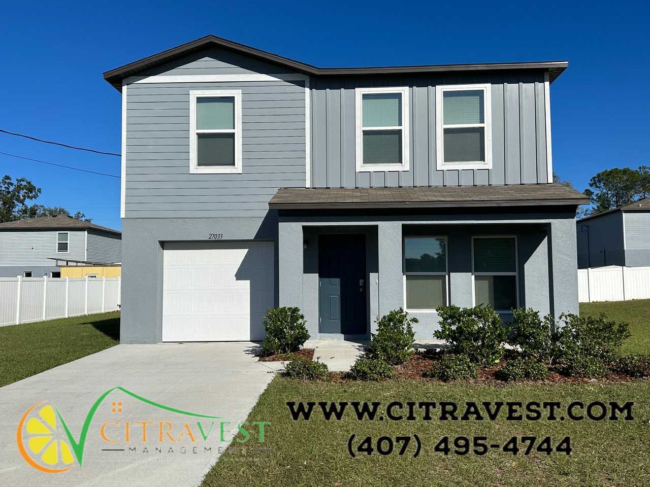 APPLY TODAY FOR FREE!! Offering 3 Bedrooms, 2.5 Bathrooms and conveniently located!! This 2-story garage home has an open great room and dining area that lead into a spacious kitchen. Upstairs is the main suite with private bath and walk-in closet as well as 2 more bedrooms and another full bath! Washer and dryer included! Most pets welcome! Call 407-495-4744, 24 hours a day, 7 days a week. To set an appointment or get more info on this house, 407-495-4744 or email us at **** or visit us online at www citravest com