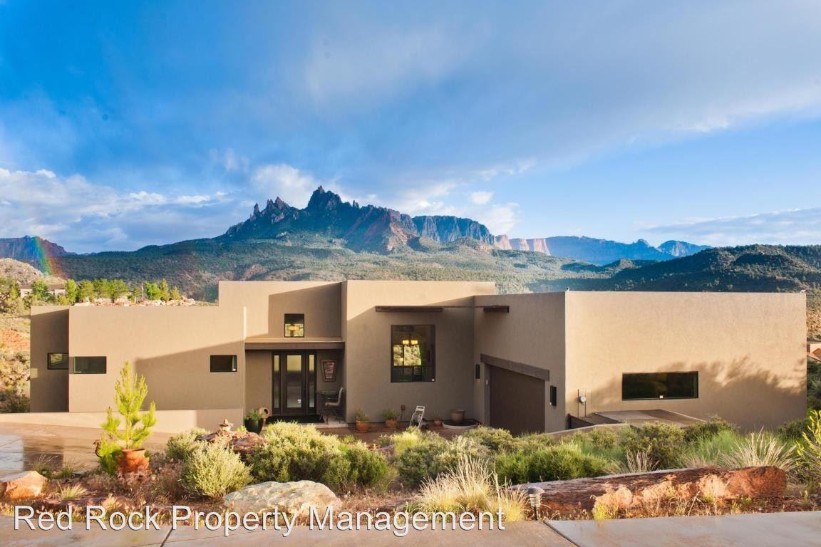 Springdale 3 Bedroom Home with VIEWS - Anasazi Plateau - This beautifully designed open-concept home features large picture windows to enjoy the incredible mountains of Zion National Park. A spacious master suite with high-end granite finishes and a private deck. Bosch appliances, 8 ft solid wood doors, 10 & 14 ft ceilings, aluminum windows, two large balconies, hand-chiseled concrete floors, and luxurious bathrooms. All windows have poly carb security film. Pets allowed upon approval of the owner. $75/mo per pet and an additional deposit of $500 per pet. **the property is being listed for sale** NO smoking. To schedule a viewing, please copy this link into your browser: https app tenantturner com qualify 2704-hopi-circle?p=TenantTurner or call our office at 435-703-9946. Still have questions? Email us at ****. Be sure to visit our website for more information and to apply @ redrockpropertymanagement. com