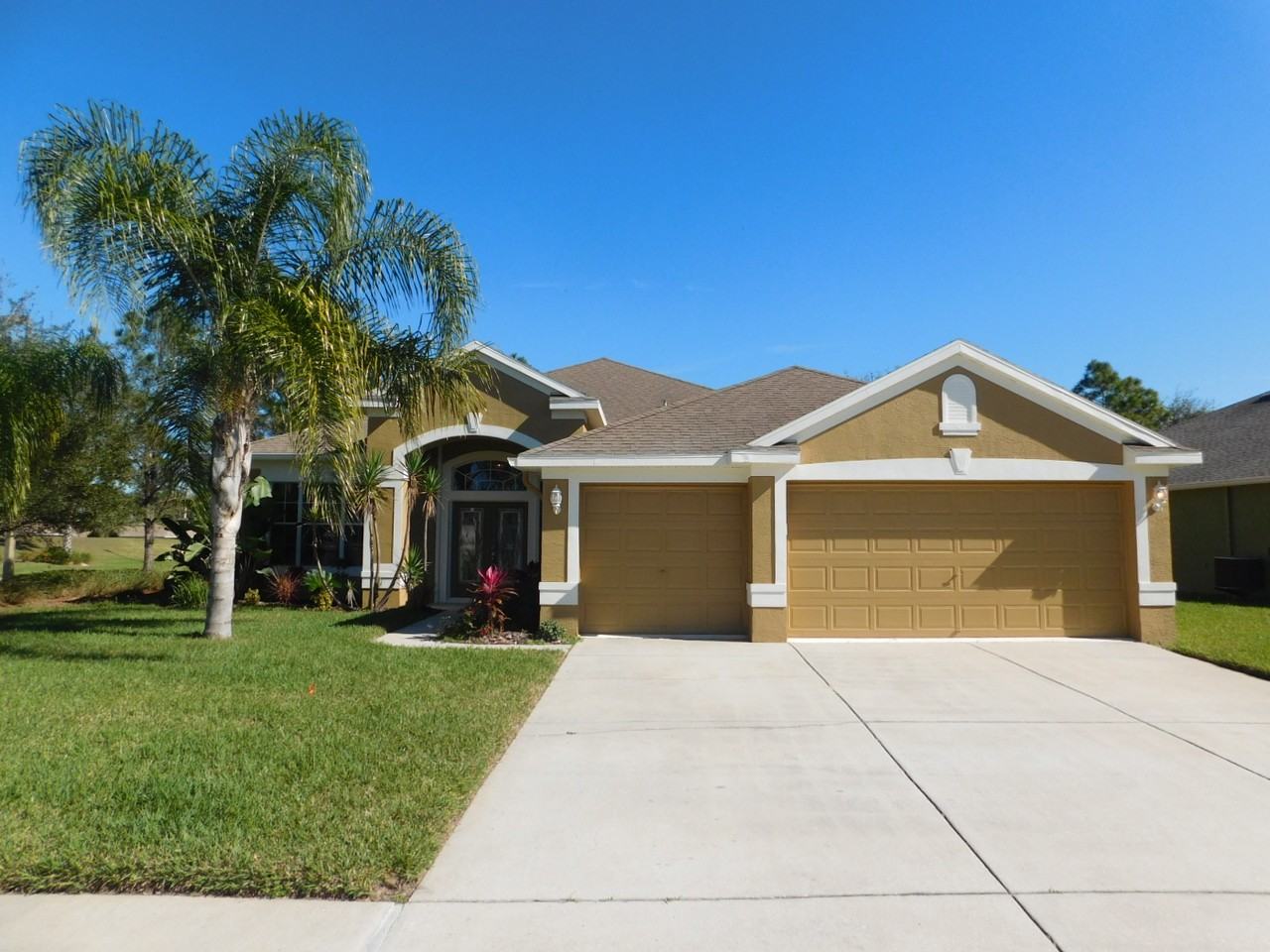 This LUXURIOUS 4 bedroom 3 bathroom home at 2,319 heated square feet is open & spacious with a formal living room, formal dining room & HUGE family room. Eat-in kitchen with stainless steel appliances, wood cabinets, lots of counter top space, closet pantry & a breakfast bar. Master bedroom is large with 2 walk in closets & the master bathroom has a garden tub, double sinks/vanities and a glass shower stall. Good sized bedrooms with ample closets. The wide open 3 way split bedroom plan has huge vaulted 15 foot ceilings. All flooring throughout entire home is neutral color ceramic tile. The completely remodeled home has new paint inside and out. Screened in lanai perfect for relaxing. Inside Utility Room with washer & dryer hook ups, automatic irrigation system for watering the new sod in front yard and professional landscaping with lawn mowing services included in the rent. Large corner lot home with views of the tennis courts, grounds and Olympic sized pool and the clubhouse you will feel like you are at a gulf side resort, within walking distance to gulf side parks and fishing pier. This home is a must see. ONE SMALL PET ONLY