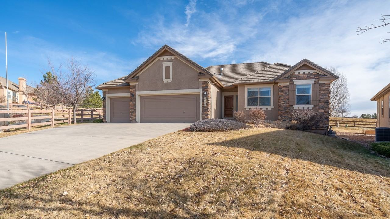 Beautiful rancher with a 3 car garage on a large corner HOA maintained lot. As you enter this home you are greeted with gleaming hardwood floors and an open floor plan. The dining room space flows nicely into the open family room with a gas fireplace, great for entertaining. Beautifully updated kitchen with white cabinets, a center island, subway tile backsplash, solid surface counters and stainless steel appliances. Escape to your outdoor oasis from the kitchen patio doors to a private patio and large backyard. The primary ensuite has double vanities with makeup space, a large walk in shower and tile floors. The primary bedroom has a large walk in closet and loads of light. A private bedroom with a full bathroom, and laundry area round out this level. The fully finished basement has a large rec space great for movie night, game night or just chilling with the family. An oversized bedroom with large walk in closet is private for your overnight guests. An additional bedroom, storage space and a full bath complete the basement area. Great location in the beautiful subdivision of Flying Horse with access to community parks and amenities galore. Easy access to I-25, restaurants, shopping and entertainment. For more information and an application, please visit https springshomesforrent com available-rentals https my matterport com show ?m=4rX1XTjGDA8