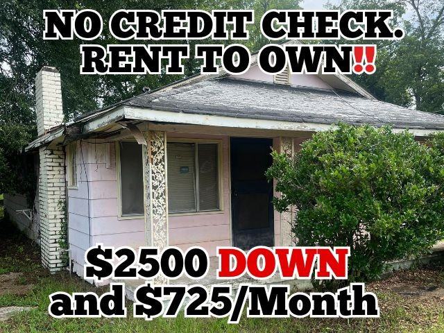 HOME OWNERSHIP OPPORTUNITY. NO CREDIT CHECK!! $2500 DOWN $725/MONTH!! Property will need immediate repairs and IS NOT MOVE IN READY. If you are a handy man or carpenter looking to put in some sweat equity or if you are an investor looking for another property to add to your portfolio without paying a ton of cash up front, THIS OPPORTUNITY IS FOR YOU. The property sits on a HUGE lot. as well. Wont Last Long!! ***Seller is willing to replace the roof however the monthly payment will increase to $875/Month or take it AS IS and the payments will be $725. Down Payment is Required for Both Options***