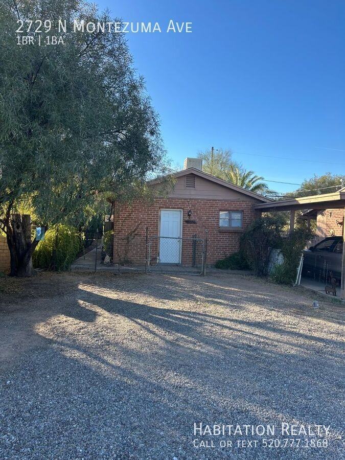 This free-standing 1 bedroom, 1 bath guest house is your next sweet spot! Marvelous mid-century charm. Super-sized living room. Classic 50s bathroom in pristine condition and a tub deep enough to enjoy a bath. Kitchen has loads of storage, gas range, microwave, new stylish retro fridge, exterior door for your BBQ-ing ease. New: interior paint, freshly painted concrete floors, and washer/dryer. Newer mini-split for energy efficient heating and cooling. Private yard. Off-street parking. Plus, excellent central location close to public transportation, shopping, dining, parks, Rillito Riverwalk, and bike paths too. Snap up this nugget while you can! $1250 due at lease signing. This includes a $750 refundable security deposit, $250 non-refundable cleaning fee, AND $250 non-refundable leasing fee. First month's rent PLUS water/trash charge, OR prorated amounts, due two days prior to move-in. $50 per month for water/sewer/trash/recycling services charged to tenant along with rent. Tenant sets up and pays electric and gas utilities. PETS: up to two well-behaved and loved pets welcome with owner approval AND one-time $100 per pet fee (non-refundable). RENTERS INSURANCE: required. NON-SMOKING unit AND property. APPLICATION FEE: $55 per person, applications from all applying must be provided for processing, guarantor may be required, all applicants must pass: credit, criminal, and prior eviction screening. Enrollment in Resident Benefits Pkg optional. Professionally managed by Habitation Realty Inc. Equal Housing Opportunity. Concrete Floors Enclosed Yard Mini Split Ac/Heat Washer/Dryer
