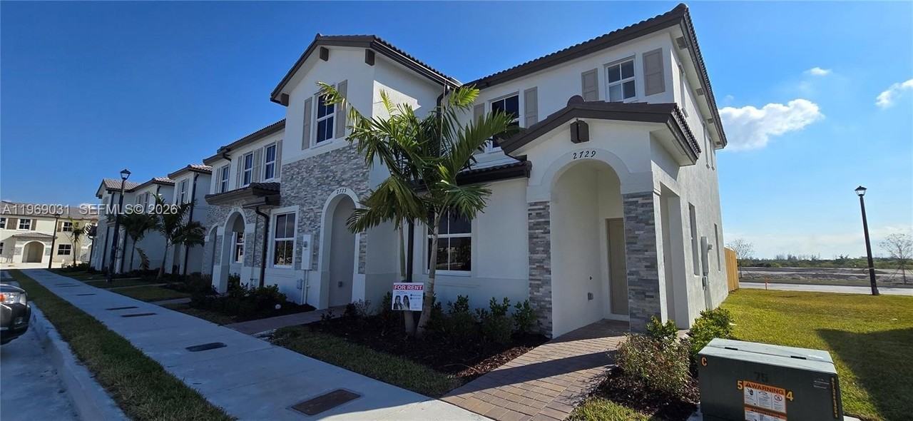 Property Status: Active Brand-new 3-bedroom, 3-bath corner villa for rent! This beautiful property features a spacious and functional layout with one bedroom and full bath conveniently located on the first floor, ideal for guests or multigenerational living. The second floor offers comfortable carpet flooring and well-distributed bedrooms for added privacy. Modern kitchen with stainless steel appliances, contemporary cabinetry, and open design connecting to the main living area. Enjoy abundant natural light throughout and the added privacy of a corner lot with private patio space, perfect for relaxing or entertaining. Washer and dryer included. Located in a desirable community with easy access to major roads, shopping, dining, and schools. Move-in ready and easy to show. Rapid approval process. Office Phone: (786) 581-3100 Copyright © 2026 Miami REALTORS®. All rights reserved. All information provided by the listing agent/broker is deemed reliable but is not guaranteed and should be independently verified.