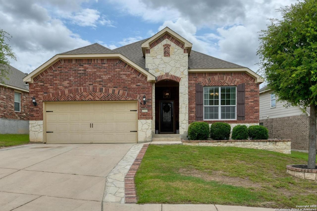 Nestled at the foothills of the picturesque Texas Hill Country, this beautifully appointed home offers designer touches throughout and a layout perfect for both everyday living and entertaining. The heart of the home is a chef's dream kitchen, featuring upgraded cabinetry, double ovens, pendant lighting and a 36 inch five burner gas stove. Rich hardwood floors span the main level, complemented by 5 inch baseboards throughout. The floorplan includes a sought after downstairs secondary bedroom, ideal for guests. Gated Community, community pool, playground and pavilion.