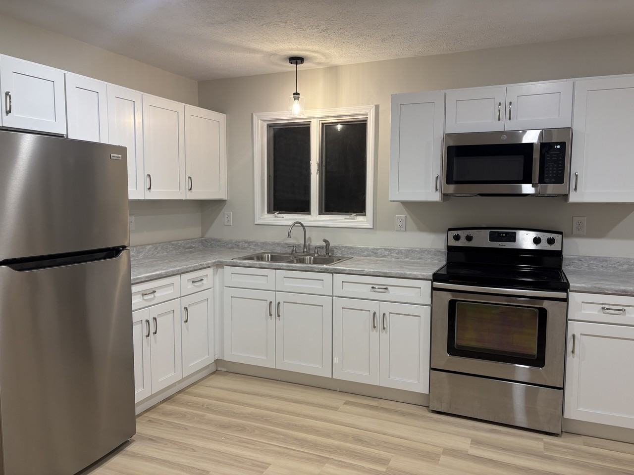 This is a freshly remodeled property located at 275 W 10th St it features 3 bedrooms and 1 bathroom within a total living space of 1,000 square feet. The living room offers ample space for relaxation and entertainment, out the front door there is a nice sized deck. The bathroom includes a tub/shower combination for convenience. The property is equipped with essential amenities such as cable readiness, forced air heat, and an in-unit washer and dryer located in the basement. The exterior provides a straightforward layout with easy access to the entrance. There is a small yard and a small shed for storage. We're looking for a non smoking tenant, a completed application with credit and background check is required to schedule a showing.