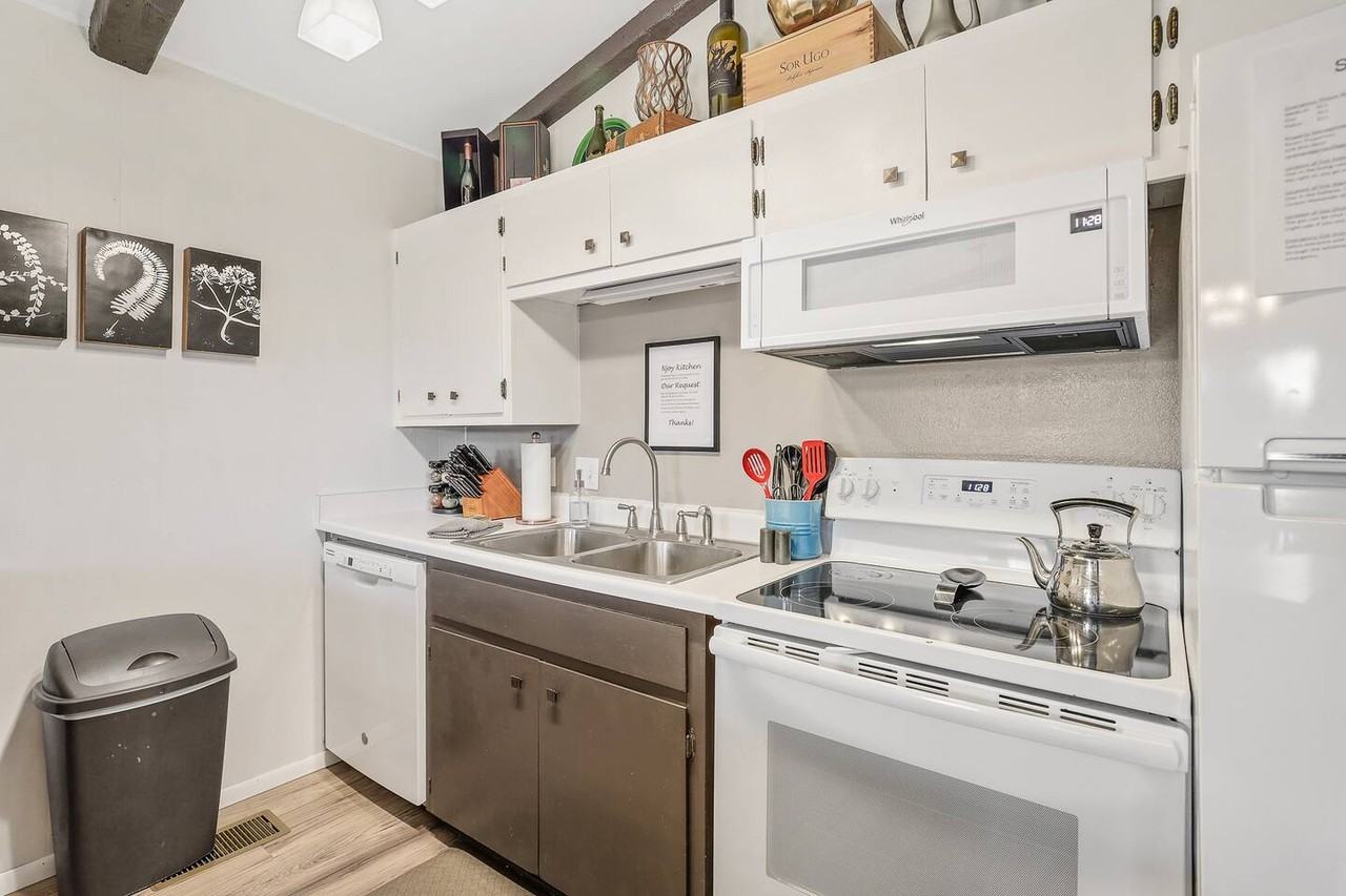 3bed 2 bath, all on one floor. Fully furnished. Has been running airbnb and like to do flat rental now. This cozy home is a tranquil getaway nestled in the woods of Kachina Village. It is one of th emost peaceful places you will find. It has an amazing view from the back deck and is a great location for families that love to take day trips.