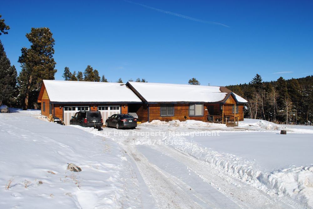 Wonderful 4 bedroom, 2 bath single level home on Richmond Hill in Conifer. Flat, circular driveway, 2 car detached garage with covered walkway to home. Sunken living room with pellet stove, Eat in kitchen with pantry, island, and butler's counter. Propane forced air heat. Large flat yard. Plenty of storage, pets negotiable, available Feb. 20th!