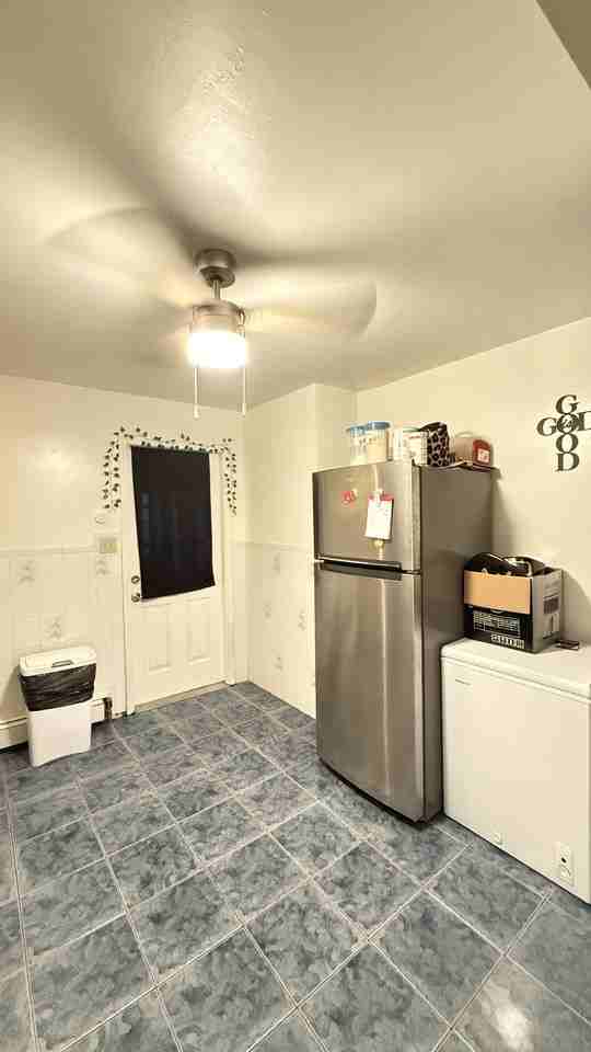 Recently updated 3-bedroom, 1-bathroom first-floor apartment at 279 Ontario Street in Albany's Pine Hills neighborhood. This 1,200 square foot unit features a spacious eat-in kitchen with new shaker-style cabinetry, marble-look countertops, stainless steel gas range, over-range microwave, dishwasher, and stainless steel refrigerator. A ceiling fan and recessed lighting complete the kitchen, which also has a door leading to the backyard. The full bathroom includes dark tile flooring, a white vanity with modern fixtures, a tub/shower combo with handheld showerhead, exhaust fan, and a window for natural ventilation. All three bedrooms are good-sized, with a mix of hardwood and vinyl plank flooring, and ceiling fans in select rooms. Baseboard hot water heating is provided throughout the unit for comfortable, zone-controlled warmth. The apartment includes a long hallway connecting the bedrooms and living spaces, with tile flooring throughout common areas. Washer and dryer hookups are available in the basement (tenants supply their own machines). The building also offers a shared backyard with green space, a rear deck, and rear entrance access from the kitchen. Contact MKZ Property Service and Management at 646-244-2015 or **** to schedule a showing. 279 Ontario Street is a well-maintained two-family home located in Albany's Pine Hills neighborhood, one of the city's most walkable residential areas. The building is within easy reach of shops and restaurants along Western Avenue and Madison Avenue, with convenient access to CDTA bus routes. The University at Albany uptown campus and Saint Rose College are both a short commute away. The property features a shared backyard with green space and a rear deck, along with a secure common vestibule entry.