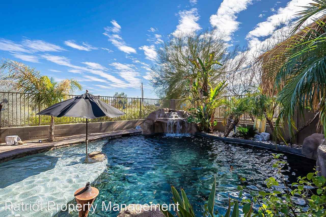 Backyard Paradise with 5 Bedrooms & 3 Baths - Enjoy the most beautiful backyard OASIS! Stunning pebble tec pool with soothing water fall. Soak in the raised spa under the Palapa. Giant built in BBQ, Fireplace and outdoor kitchen. Entertain your family and friends and eat at the sand bar. Five bedrooms and three full bathrooms. This home backs to the natural wash so there is no neighbor behind. RV. Gate. This one won't last long! Pool Services can be included at an additional fee. No Pets Allowed