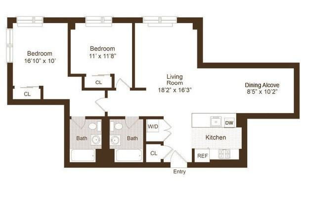 2-bedroom apartments at 28 Caton Pl 7J cost about 10% less than the average rent price for 2-bedroom apartments in New York.