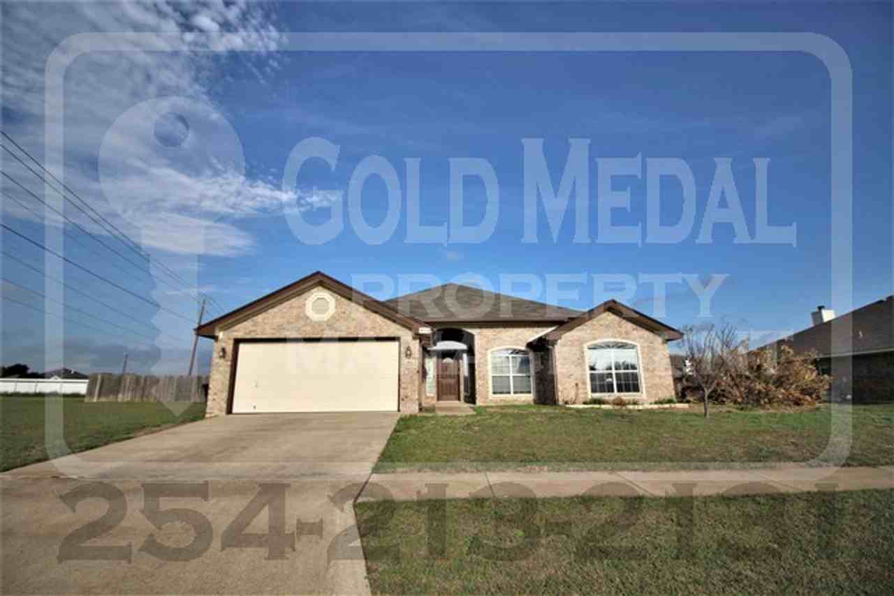 Well maintained three-bedroom, two-bathroom home with a 2-car garage and a flex room, off of Clear Creek Rd. with an abundance of restaurants, stores/grocery stores, Central Texas College, Metroplex, and many other places in close proximity and quick access to Ft. Hood or Interstate 14. This home is a combination of ceramic tile and plank flooring with a neutral tone paint throughout. Upon entering the living room you will fall in love with the open feel of this home. Adorned with a tray ceiling, brick fireplace, and recessed lighting, this living room is the perfect for entertaining family and guests. Not to mention it is spacious enough to accommodate any style of furniture. The office is conveniently connected to the living room via a set of double doors, perfect as an office, playroom, or any style of flex room you need. Through the archway in the living room is the kitchen and dining space. This kitchen has plenty of cabinet and counter space for all of your appliances, not to mention an island and a large pantry with double doors. Appliances in the kitchen include a refrigerator, range, dishwasher, and over the range microwave. To the right of the living room are the secondary bedrooms and hall bathroom. Both bedrooms are spacious with ample closet space and ceiling fans. The shared hall bathroom has a single sink with cabinet space and a shower tub combo. To the left of the living room is the primary bedroom, en suite, and utility room. The primary bedroom has a tray ceiling, ceiling fan, and plenty of space for any size bedroom furniture. The en suite has a double sink, two walk in matching closets, a jetted tub, a walk-in shower, and the toilet is in its own private room within the bathroom. The utility room is right outside of the primary bedroom and has full size washer/dryer connections and the interior door to the garage. The backyard is large and has a covered patio area great for hosting events outside and staying out of the sun in the Texas heat. If you feel this home could be perfect for you, give our office a call to experience the Gold Medal difference. This home is zoned for Iduma Elementary, Live Oak Ridge Middle, Robert M Shoemaker High. IAW Gold Medal Policy, ALL properties must be seen by the financially responsible individual wanting to rent the unit. This property is available by checking out a key from the Gold Medal office at 1002 E Elms Rd Ste 101, Killeen, TX 76542. The key check out window of M-F 9 AM to 3:00 PM. Ensure to have a valid government issued ID card and a $20 bill for the key check out. You will fill out a slip of paper while we make the copy of the ID and return it to you. Once the key is received it must be returned by 4:00 PM. If not returned by this time you will forfeit your key deposit.