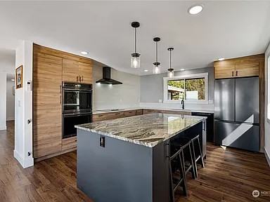 Welcome to this incredible retreat with stunning views of Lummi Bay and the San Juan Islands, this home blends modern comfort and natural beauty. The open-concept living space and abundant natural light create a welcoming atmosphere. The kitchen features stainless steel appliances, quartz countertops, and custom cabinetry. The 750 square feet wrap-around deck offers ample space to enjoy outdoor living and panoramic views. The layout includes a primary suite and a second bedroom on the main floor, while the downstairs area has a family/recreation room, an additional bedroom with water views. The 12kW solar system adds energy efficiency and eliminates the power bill. Ready for a month to month renter.