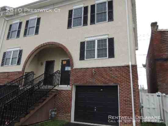 End-unit townhouse in Wilmington features 4 bedrooms, 2 full baths, and a powder room, a spacious eat-in kitchen and a finished basement. There's even an oversized 1-car garage. This home is in excellent good condition! A small community of similar homes in a convenient location. Bedroom-level laundry. All appliances are in place and are included. Large master bedroom with walk-in closet and bath. The third-floor loft is finished as the 4th bedroom with a huge closet and its own a/c. Rear access from the family room to a small backyard.