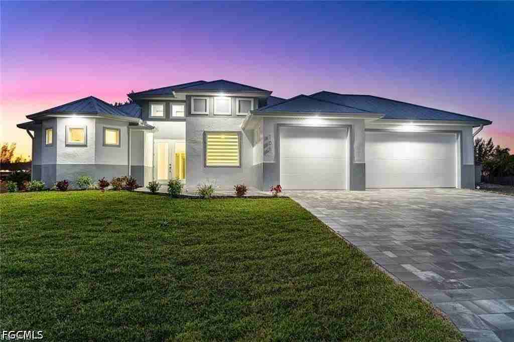 Property Status: Active Extraordinary Contemporary Home near a Golf Course. ZERO/CORNER DOOR SLIDERS. Open floor plan featuring 3 large bedrooms plus Den/ and 3 beautifully designed bathrooms with upgraded tile, glass shower doors and custom cabinetry. Spacious living room opens to the kitchen and dining area. Kitchen features modern stainless steel appliances. Quartz counter tops throughout the kitchen including a waterfall countertop island, bathroom, laundry and window sills. Impact glass windows and doors throughout. Wood cabinetry and 32"x32" porcelain tile used throughout the house. Master bedroom includes his and hers walk in closets with wooden shelves in all of the closets. Living area, dining room, master bedroom, and lanai all feature captivating tray ceilings. METAL ROOF, insulated garage doors and LED light all around to save energy. Gorgeous lighting fixture package. Electric garage door opener, garage floor painted with epoxy. Pavers on driveway, walkway, lanai, and deck. Office Phone: (239) 645-2203 Copyright © 2026 Florida Gulf Coast Multiple Listing Service, Inc. All rights reserved. All information provided by the listing agent/broker is deemed reliable but is not guaranteed and should be independently verified.