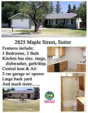 2825 Maple St cost $1,150 per month. Located at 2825 Maple St, Sutter, CA 95982, USA, this unit has 3 bedrooms and 2 bathrooms.