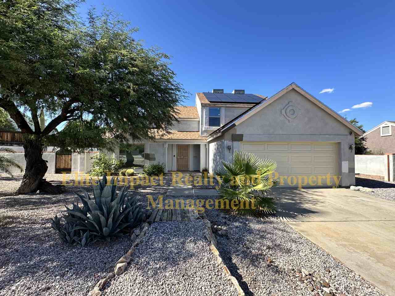 STUNNING! 2 story, 4bd/2.5 bath located in beautiful Saddlewood Ranch on the west side of Tucson. This open, airy home is newly renovated and boasts new flooring, newly remodeled bathrooms and new fixtures throughout. Entryway welcomes you to the first spacious living area with vaulted ceilings and amazing natural light. Kitchen includes breakfast bar and dining area, complete with Stainless steel appliances, plenty of counter, cabinet space and an open pantry. Family room/den includes wood burning fireplace. Primary bedroom is downstairs with large walk-in closet. Master bath has dual vanities and walk-in shower. Ceiling fans in all rooms for added comfort. Huge back yard oasis is perfect for entertaining with covered patio, fire pit and maintained Koi pond. Side yard with double gate for RV Storage. NO HOA! Solar to help keep those electric bills down! W/D for convenience. Pet Friendly. This one has it all! Hurry before it's gone! Call/Text 520-975-0403 for showing.